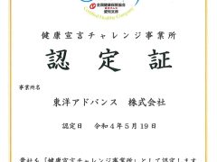 東洋アドバンス株式会社は、全国健康保険協会より、健康宣言チャレンジ事業所に認定されました。[...]